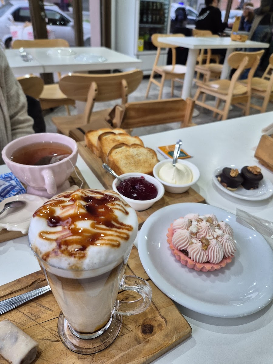 Muy rico café con crema... delicioso y suave. Solo consumi eso ya que había almorzado hacía muy poco y no tenía hambre pero seguramente vuelva a ir y deguste alguna torta o vi también una serie de bandejas con cositas muy vistosas y tentadoras para degustar que estaban llevando a otra mesa. El personal muy atento y amable..quise dejar más propina pero no tenía mas efectivo. La próxima llevaré cambio. El lugar agradable, sencillo, limpio, con aroma tentador, decoración austera...le agregaría alguna planta o cuadro en las paredes. Tiene mesitas afuera para disfrutar al aire libre. Muy pintoresco. Precios adecuados. Jueves 17/7/25 En esta ocasión lo visite x la noche ya que inauguraron esa modalidad y no le erraron. Pastas libres deliciosas, sabrosas, abundantes y detalladamente decoradas. Variedad para empacharse y deleitarse. Materia prima de 1 calidad Pedí de postre lemon pie un placer al paladar el merengue es DE LI CIO SO. Me ofrecieron probar el budín de pan y también es altamente recomendable.. saborizado con naranja y crema fresca... una explosión de sabores bien combinados. Lo recomiendo muuuuuuyyyyy mucho. Precios adecuados. Atención excelente.